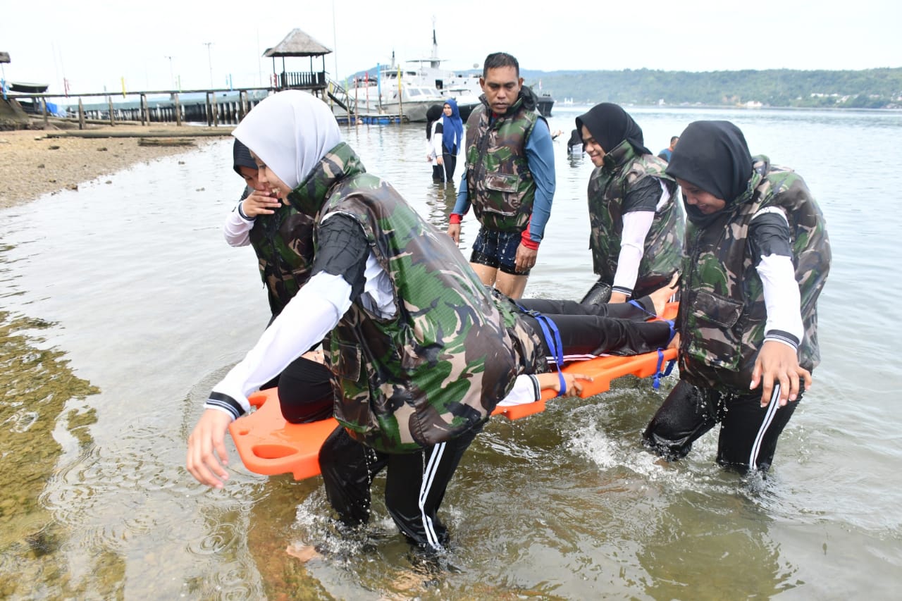 Suarapaparisa.com, TNI Angkatan Laut. Cuaca yang menyengat tak menyurutkan semangat 150 mahasiswa/i STIkes Maluku Husada Prodi S1 Keperawatan dalam melaksanakan materi latihan problem laut yang diberikan oleh 17 Instruktur Tim Evakuasi Medis Laut (EML) Lantamal IX Ambon. Bertempat di area Pantai Dermaga Beaching Mako Lantamal IX Desa Halong kec. Baguala kota Ambon. Rabu (22/12/2021).