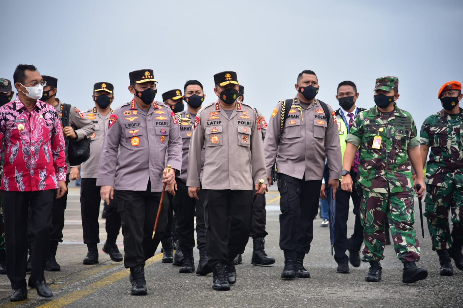 Kapolri datang di Ambon tidak sendiri. Ia didampingi delapan jenderal, yaitu Asisten Operasi Kapolri, Irjen Pol Agung Setya Imam Effendi, Asisten Perencanaan dan Anggaran Kapolri, Irjen Pol Wahyu Hadininggrat, Asisten Kapolri Bidang Sumber Daya Manusia, Irjen Pol Wahyu Widada, Asisten Logistik Kapolri, Irjen Pol. Raden Prabowo Argo Yuwono, Kadiv Humas Polri, Irjen Pol Dedi Prasetyo, Kadiv Propam Polri, Irjen Pol. Ferdy Sambo, Kadiv TIK Polri, Irjen Pol. Slamet Uliandi, dan Kepala Pusat Kedokteran dan Kesehatan Polri, Irjen Pol dr. Rusdianto, bersama sejumlah perwira menengah lainnya.