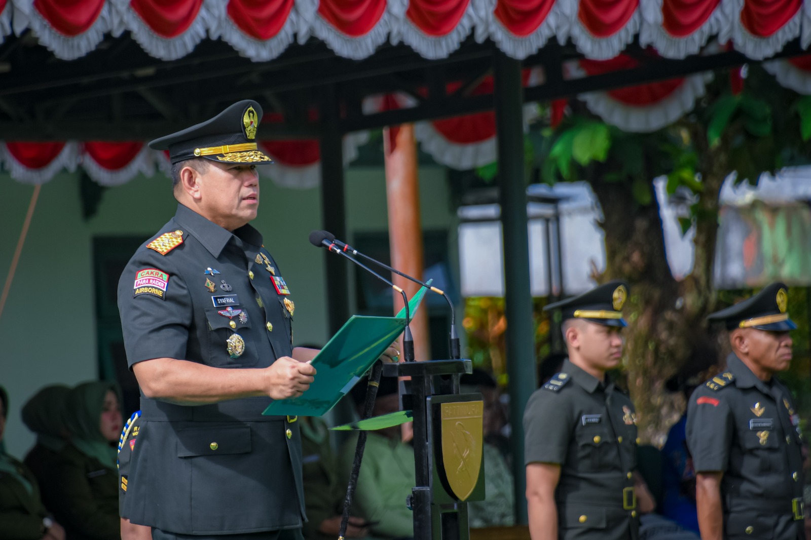 “Saya mengucapkan selamat, kepada para mantan prajurit siswa, yang telah berhasil menyelesaikan Pendidikan Tahap I dan dilantik menjadi prajurit TNI AD dengan pangkat Prajurit Dua (Prada). Tentunya, hasil yang diraih hari ini merupakan keberhasilan melalui proses yang panjang, hal ini diharapkan mampu menjadi sumber motivasi dalam melanjutkan Pendidikan Kecabangan masing-masing”, kata Pangdam.
