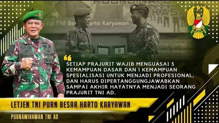Letjen TNI Purn Besar Harto Karyawan menjelaskan, untuk menjadi seorang prajurit harus menguasi 5 kemampuan dasar dan 1 kemampuan spesialisasi yang akan menciptakan prajurit yang profesional, “Seluruh hal mendasar yang mereka kuasai harus dipertanggungjawabkan sampai akhir hayat menjadi seorang prajurit,” ujarnya.