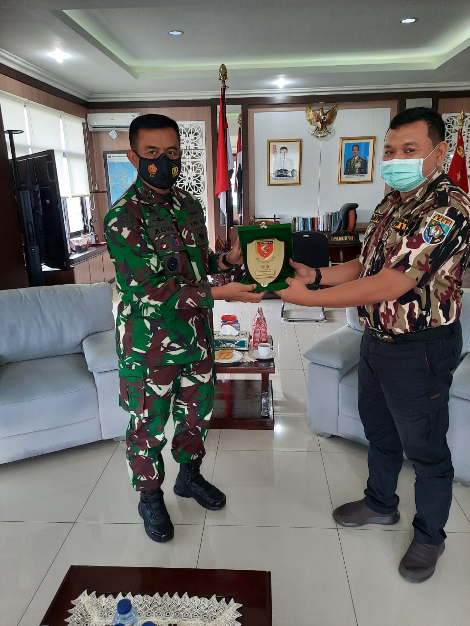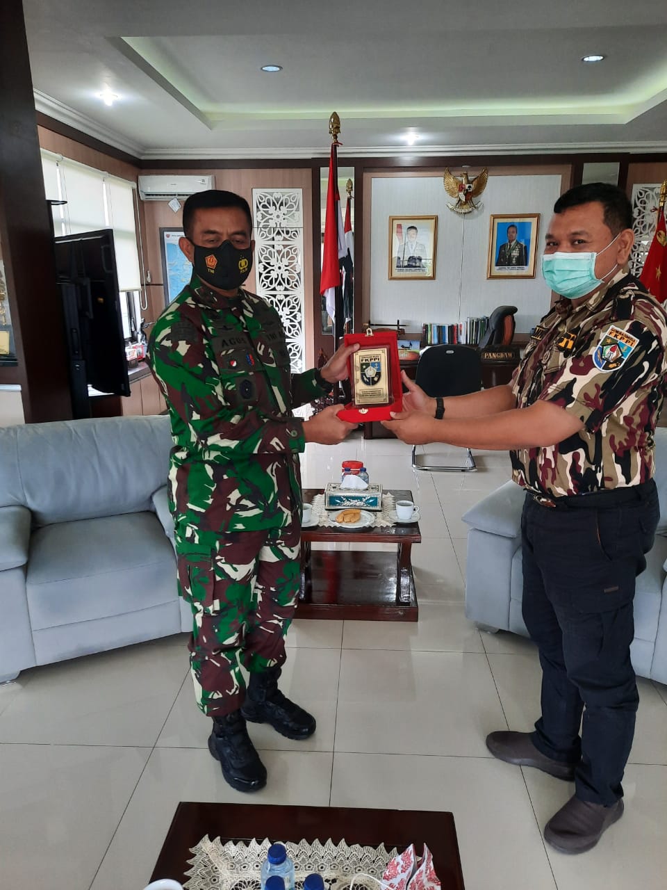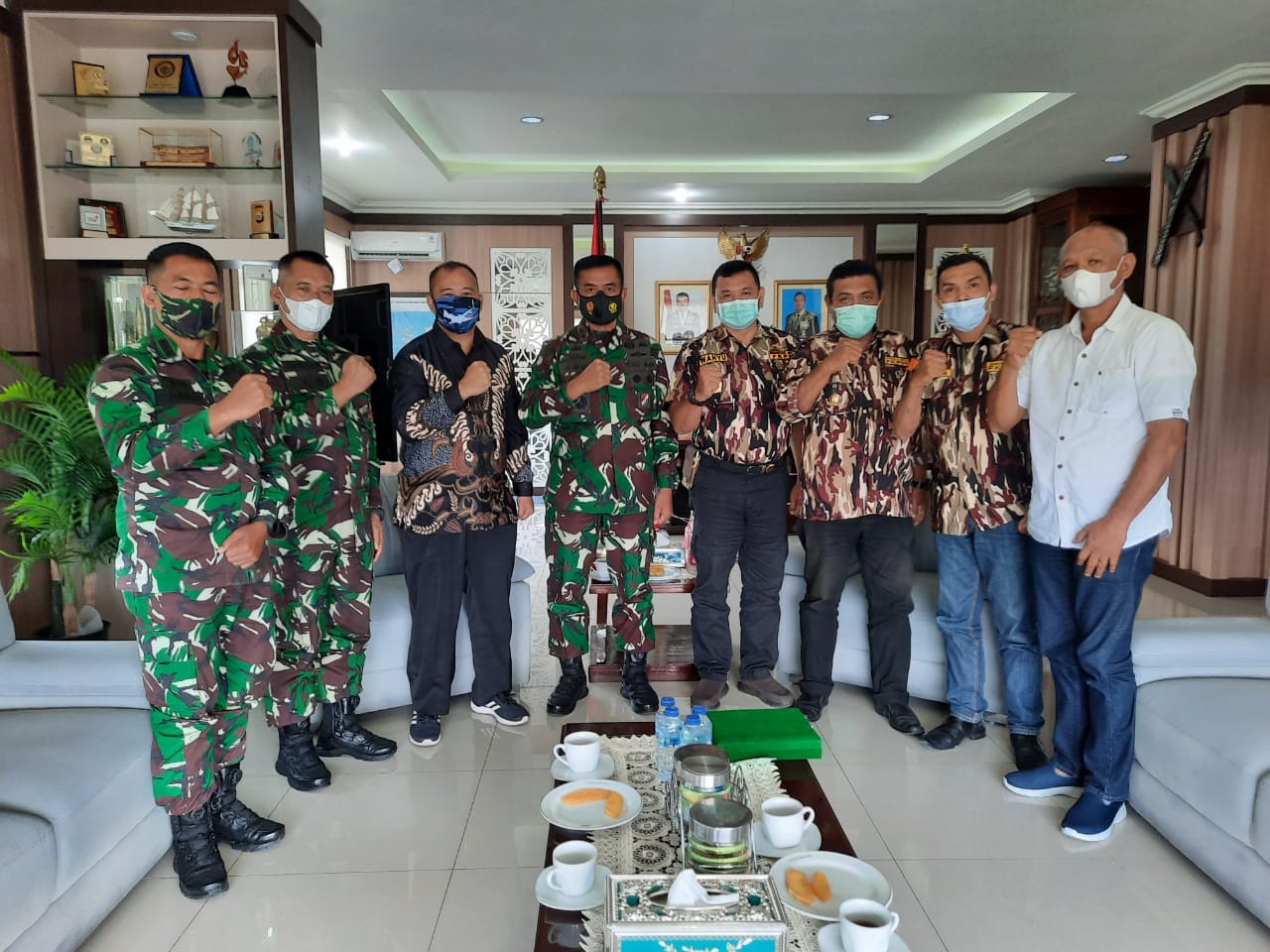 Silaturahmi bersama Pangdam XVI Pattimura berlangsung dengan Protokoler kesehatan, memakai masker, cuci tangan, jaga jarak serta mengunakan handsanitaizer. (**)