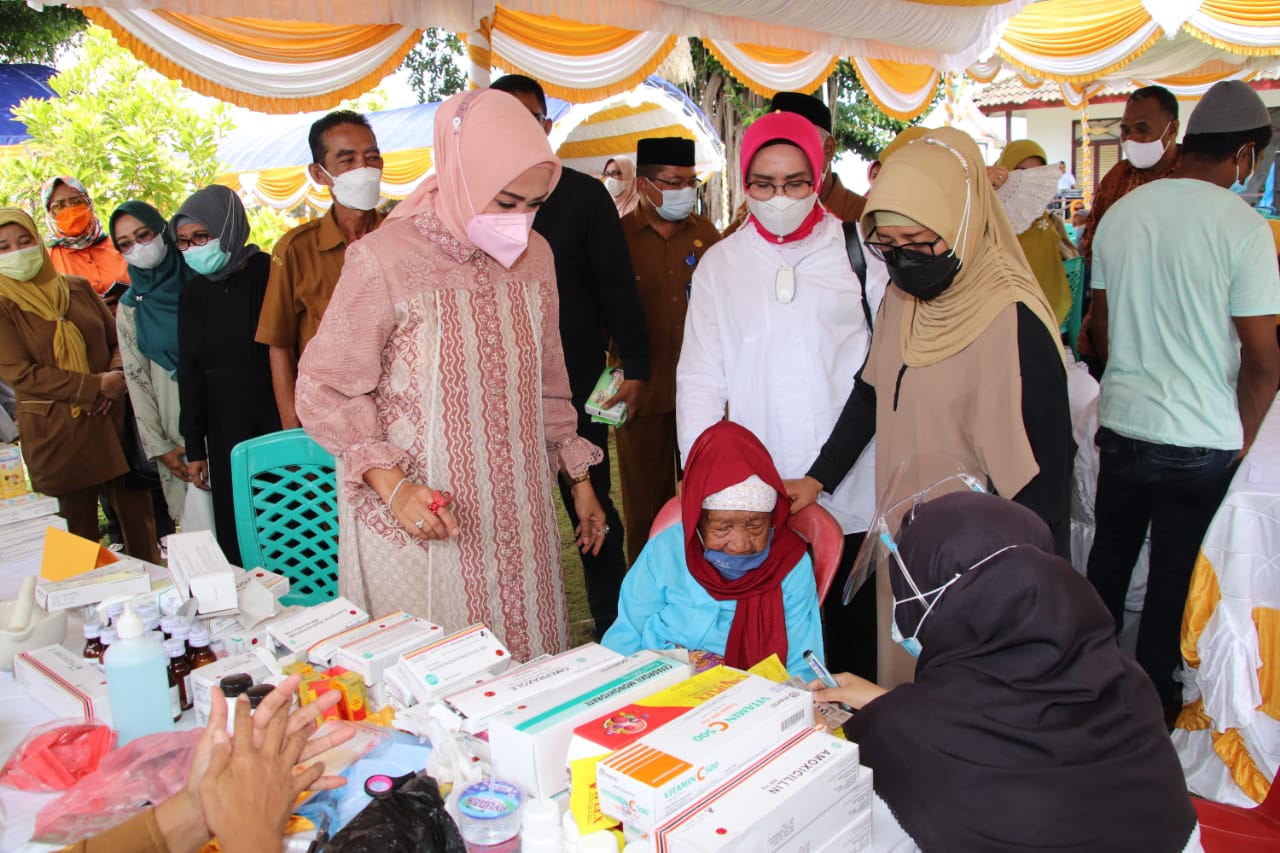 Dalam pelaksanaan program layanan kesehatan perdana yang diinisiasi MT Nur Asiah tersebut, Hj. Widya Pratiwi Murad Ismail juga berkesempatan menyerahkan 250 paket bingkisan kepada orang tua anak yang mengikuti sunatan, para janda dan warga kurang mampu.