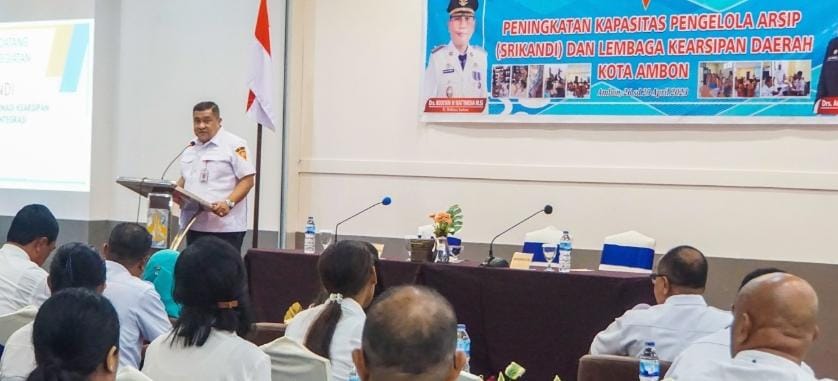 Suarapaparisa.com, Pemerintah Kota (Pemkot) Ambon menggelar Peningkatan Kapasitas Pengelolah Arsip yang berlangsung di lantai V Hotel Manise, Rabu (26/4/2023). Giat tersebut diinisiasi Dinas Perpustakaan dan Kearsipan setempat.