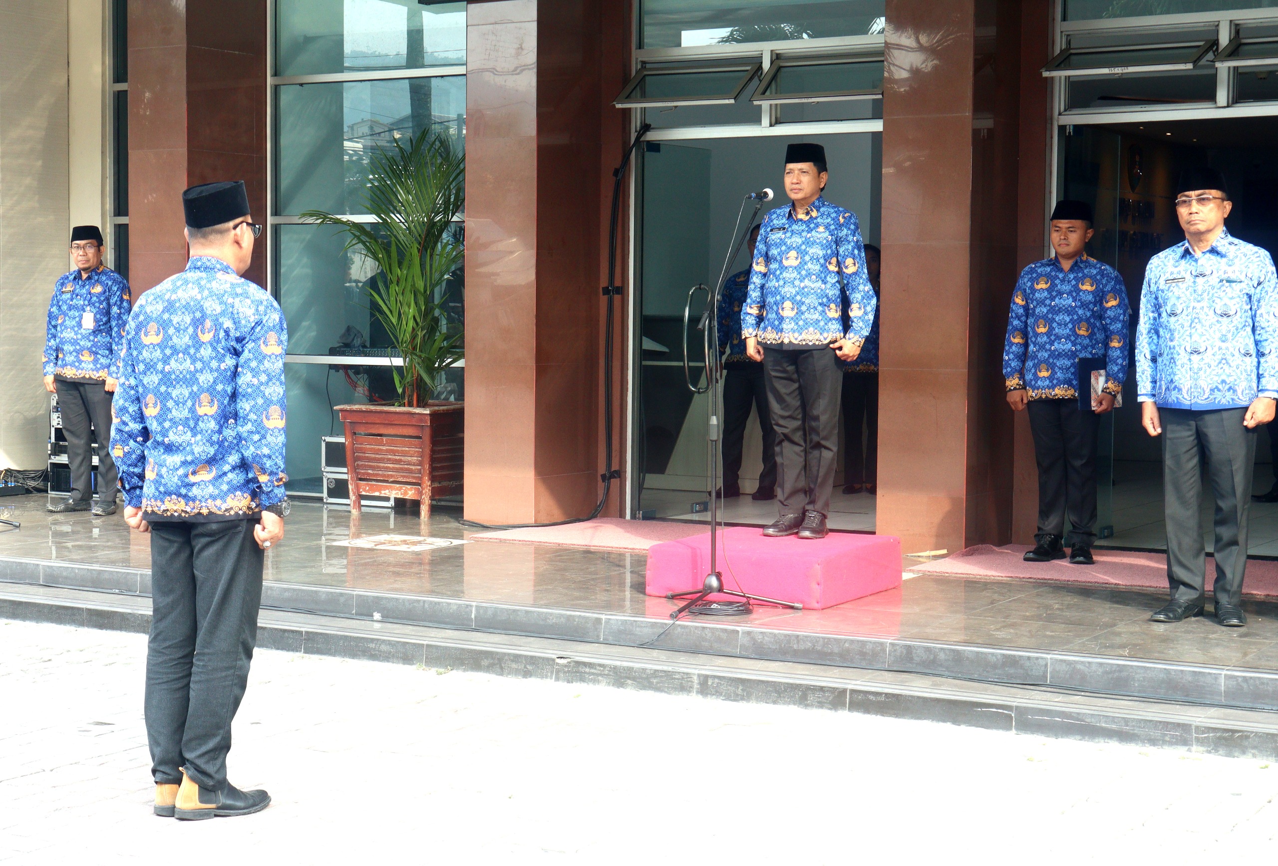 Bertindak Selaku Inspektur Upacara Sekretaris Daerah Maluku Ir. Sadali IE, M.Si, IPU, dan Komandan Upacara Kepala Satuan Polisi Pamong Praja Provinsi Maluku Drs. Titus F.L. Renwarin.