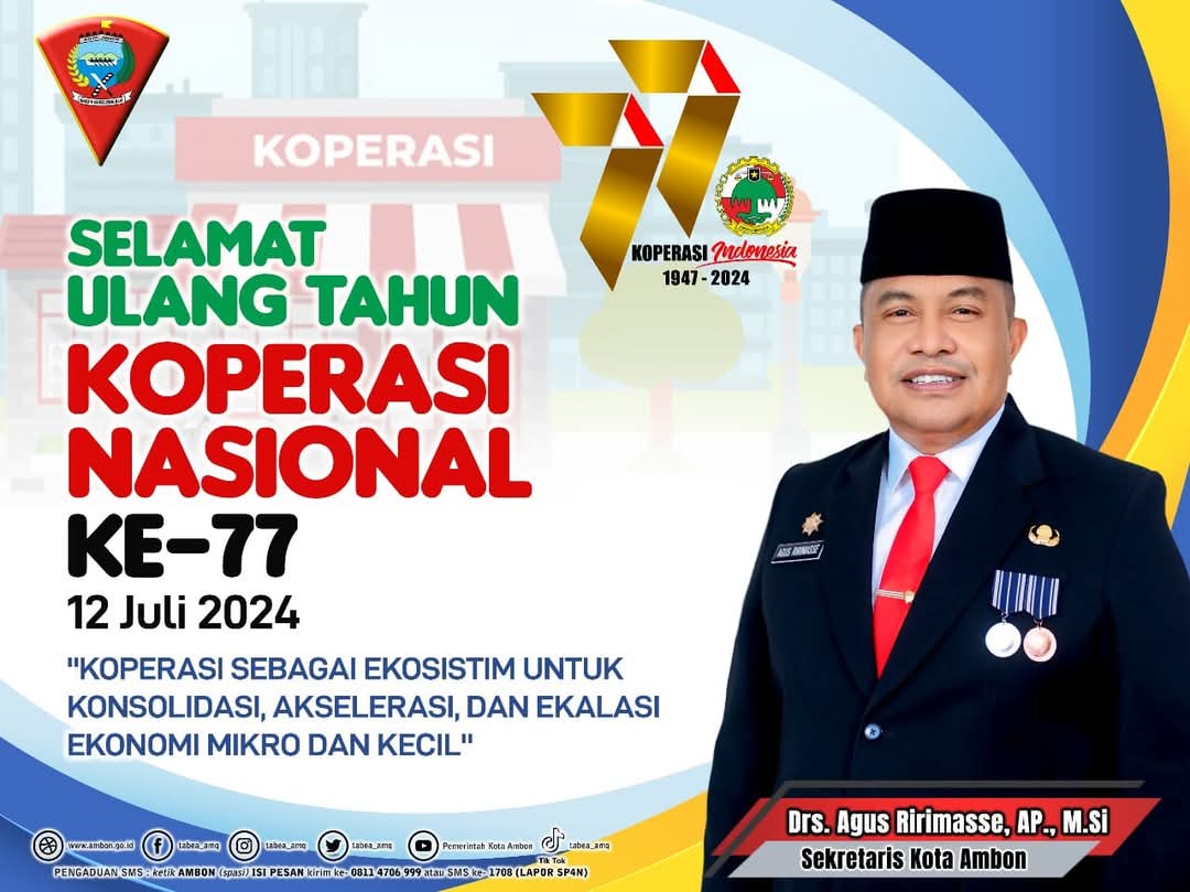 Juli 12, 2024Desember 29, 2024oleh suarapaparisa Iklan Pemkot Ambon Sekot Ambon Mengucapkan Selamat Hari Koperasi Nasional Ke 77 Tahun suarapaparisa-Iklan- views Jangan LewatkanKomandan Satuan Pertahanan Pantai Kodaeral IX Letkol Laut (P) Frejohn da COSTA dan Ny. Anita da COSTA Mengucapkan SELAMAT HARI RAYA IDULFITRI 1447 H 1 Syawal 1447 Hijriah Taqabbalallahu Minna wa minkum Mohon Maaf Lahir BatinPemda Aru Mengucapkan Selamat Idul Fitri 1 Syawal 1447 HPemda Aru Mengucapkan Selamat Tahun Baru Imlek Tahun 2026KADIN Kabupaten Kepulauan Kep. Aru Mengucapkan Hari Santri Nasional Tahun 2025, 22 Oktober 2025