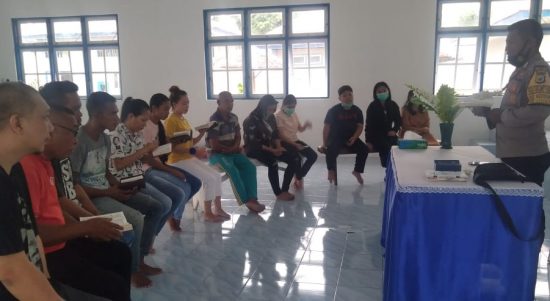Buru, SP. Com. Bhabinkamtibmas Desa Waeperang Kecamatan Lilialy kabupaten Buru, Bripka Alexander Maressy memimpin giat ibadah Minggu kepada 9 warga binaan (Tahanan)