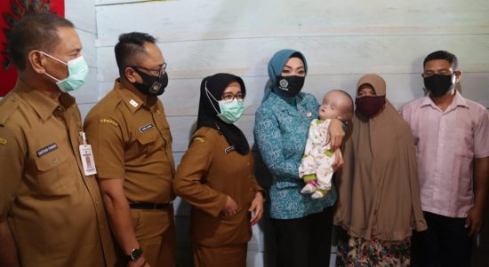 Ambon, SP. Com. Ketua Tim Penggerak PKK Provinsi Maluku, Widya Murad Ismail, mengunjungi Adzra Ni’mat Assagaff, bayi penderita hidrosefalus di Negeri Hila,